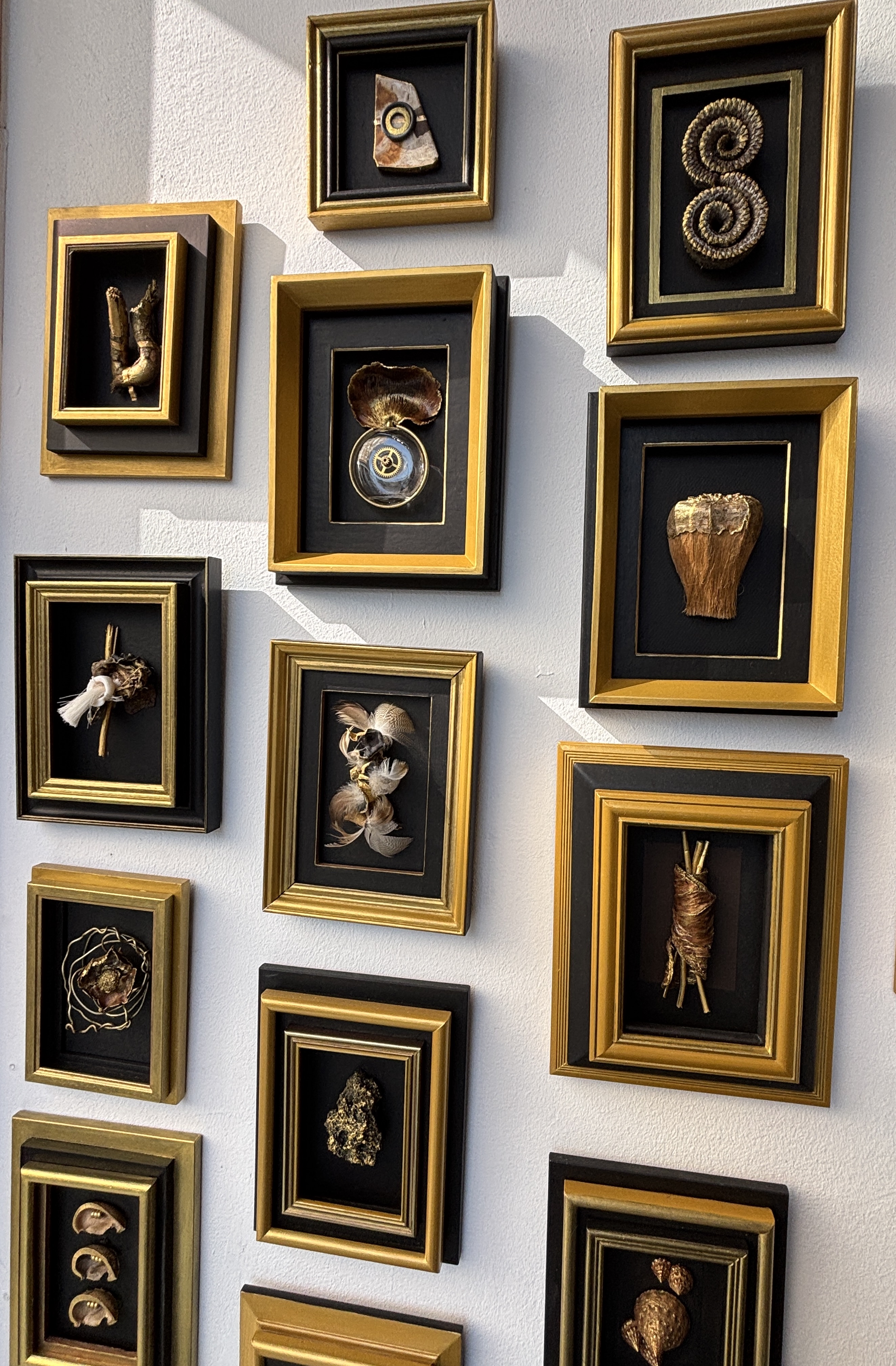 Collages, kijkkastjes, en schilderijen maakt Marian van materiaal dat zij een nieuwe betekenis geeft door het in een andere context te plaatsen, waarbij schoonheid en harmonie een hoofdrol spelen.